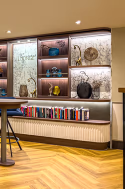 Der elegant gestaltete Ruheraum mit Blick auf den Kamin lädt zum Verweilen ein - ruhig, warm und ganz nach eigenem Rhythmus. Für kleine Erfrischungen zwischendurch steht die Self-Service Bar bereit, die mit einer Auswahl an Getränken den Spa-Besuch perfekt macht.