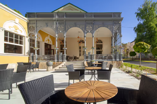 Entdecken Sie die Dependance Esplanade, nur 40 Meter vom Monti Spa Hotel entfernt. Perfekt gelegen, um vor dem Essen frisches Quellwasser zu genießen. Buchen Sie eine Kur und erleben Sie den historischen Charme des Hauses.