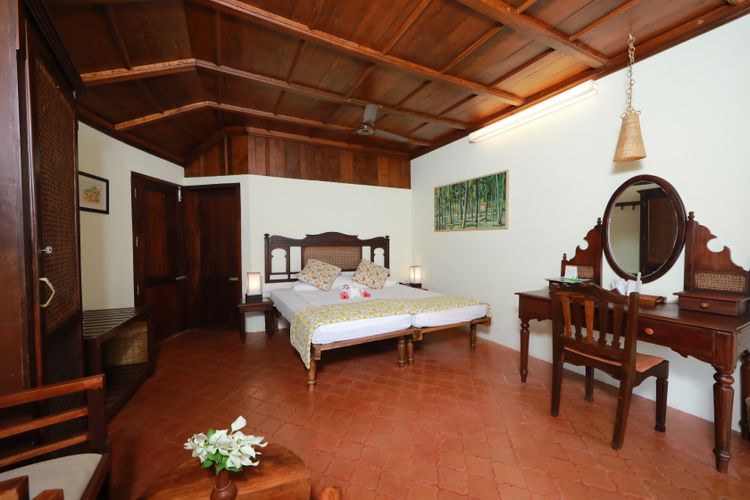 48 Wohneinheiten im traditionellen Kerala-Stil, ausgestattet mit Dusche/WC, Telefon und Terrasse, teilweise mit Meerblick und/oder Klimaanlage, verteilen sich auf 14 Cottages, 22 teilweise freistehende Chalets, 8 geräumige Standardzimmer in 2 Gebäuden (nahe dem Restaurant und Ayurveda-Center), 2 traditionelle Holzhäuser (Kerala House) in Meernähe und das ehemalige Herrenhaus The Nest (mit 2 Bädern) in Poolnähe. Das kleine Mini AC Einzelzimmer, ideal für Alleinreisende, die Ruhe und Abgeschiedenheit suchen, befindet sich beim Ayurveda-Center unterhalb des Konsultationsblocks. Die Cottages sind hauptsächlich terrassenförmig oberhalb der Badebucht angeordnet. Auf Anfrage und je nach Verfügbarkeit sind auch behindertenfreundliche Zimmer erhältlich (bitte bei der Buchung mit Wellnessurlaub.com angeben). WLAN ist in den öffentlichen Bereichen verfügbar.