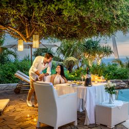 Fünf luxuriöse Villen (ca. 150-200 qm) mit offenem Bad, privatem Pool mit Meerblick, Schreibtisch, begehbarem Kleiderschrank, Teeküche, Safe, WLAN, Klimaanlage, Deckenventilator, Moskitonetz, Terrasse. Ocean View Villas mit Infinity-Pool und herrlichem Blick auf den Ozean. Delight Villa mit Wasserfall im Infinity-Pool, großem Bad im tropischen Garten und eigenem Meditationsgarten. Sky Villa mit Aussichtsterrasse und atemberaubendem Panoramablick sowie romantischem Badegarten mit Pool. Größere Sea Villa mit ca. 14 m Infinity-Pool und weitläufigem Außenbereich.