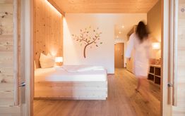 Im Garten der Träume erwarten Sie 57 Zimmer und Suiten, die ganz auf natürliche Materialien, wohltuende Ruhe und erholsamen Schlaf ausgerichtet sind. Heimische Hölzer wie Zirbe, Lärche und Eiche, metallfreie Betten, biologische Naturmatratzen sowie abgeschirmte Kabel schaffen ein Umfeld, in dem Sie nachhaltig entspannen können. Auf WLAN, Minibar und TV wird bewusst verzichtet - ein Fernsehgerät kann auf Wunsch bereitgestellt werden. Das natürliche Heiz- und Kühlsystem sorgt dabei zu jeder Jahreszeit für ein angenehmes Raumklima.