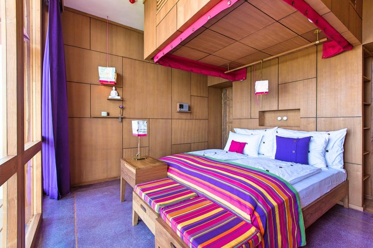 22 individuell mit Teakholz eingerichtete Nichtraucherzimmer in vier Gebäuden. 13 Doppelzimmer bieten einen Balkon mit Blick auf das Meer oder den Garten, manche zusätzlich einen Dachgarten und/oder einen Pool. Zwei Villen mit Gartenblick und drei Villen mit Meerblick, jede mit eigenem Pool, Terrasse und einem separaten Wohnbereich inklusive Küche. Eine Villa mit zwei Schlafzimmern (für 2 bis 4 Personen) verfügt über eine Terrasse, einen Balkon sowie ein Wohnzimmer mit Ess- und Küchenbereich und einem privaten Pool. Suite mit zwei Schlafzimmern (für 2 bis 4 Personen) mit Blick auf das Meer. Eine Grand Villa (für bis zu 6 Personen) mit drei Schlafzimmern, drei Bädern, einem Ankleideraum und einem Privat-Pool. Statt eines Fernsehers gibt es ein hoteleigenes Kino, das Filme zeigt. Einzelzimmer sind Doppelzimmer zur Alleinbenutzung.
